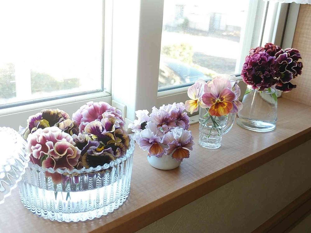 パンジー達の蕾が沢山上がってきているので綺麗に咲いているうちに摘みとりニマニマしながら😊お家花で楽しんでます💓