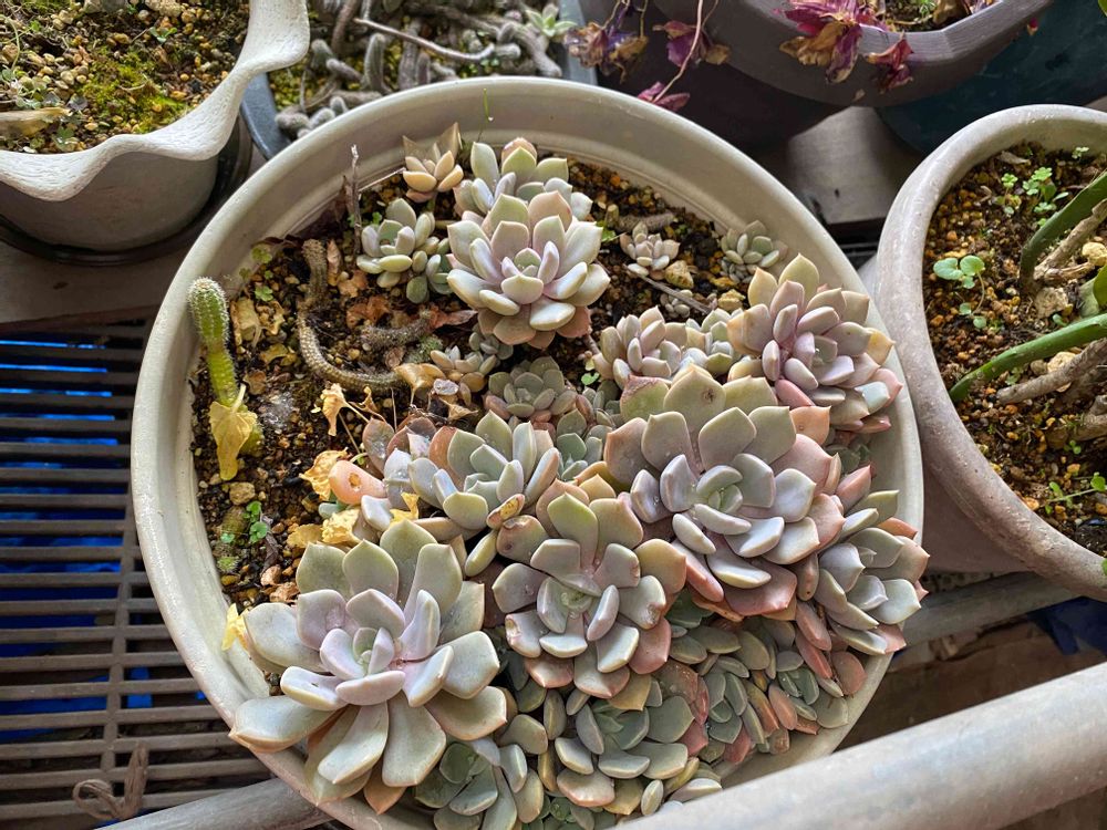 ただ、厚みのある下葉がやや長く、内側に反り返って見えるところは、パキベリア属の"立田"という品種に似ているような気がします。