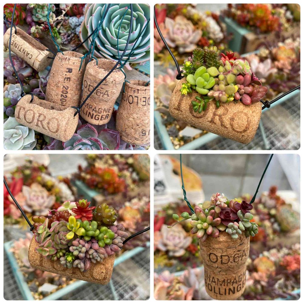 小さいコルクをくりぬくのも植えるのも大変そう💦でもとっても可愛いですね🥰🥰