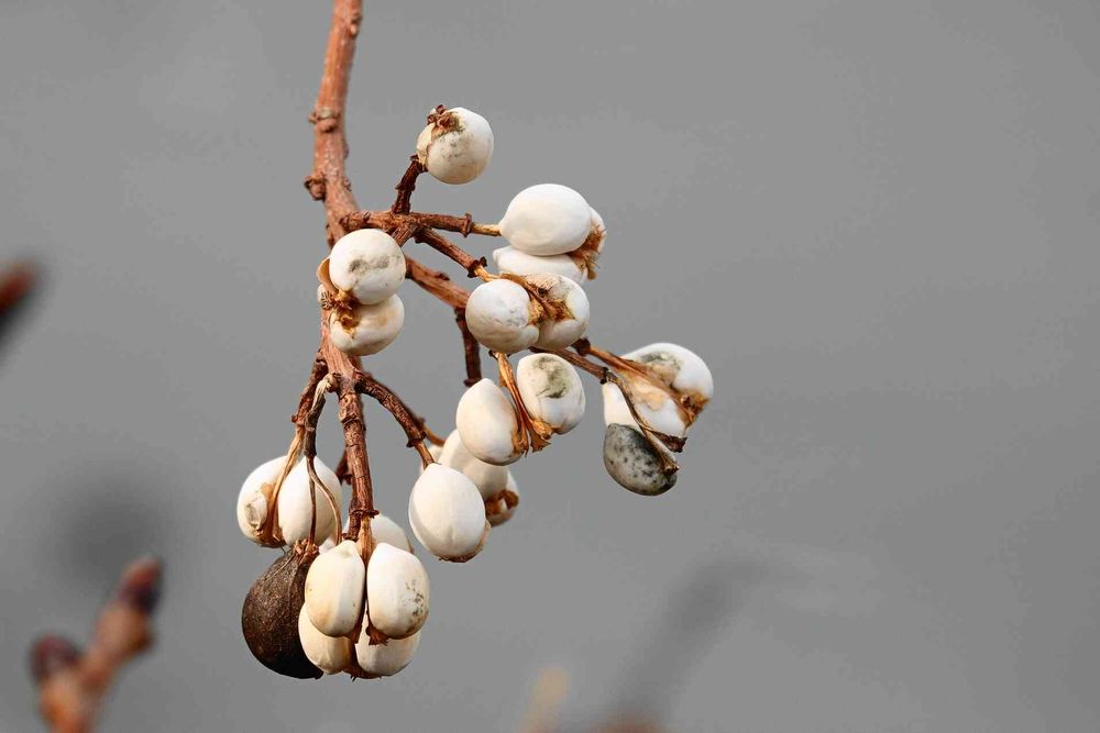 江戸川放水路の土手で真っ白い実を付けていました。元々は蝋を取るために中国から輸入されたようです。河川敷の枯れ草の中で、白さがひときわ目立っていました😊。
