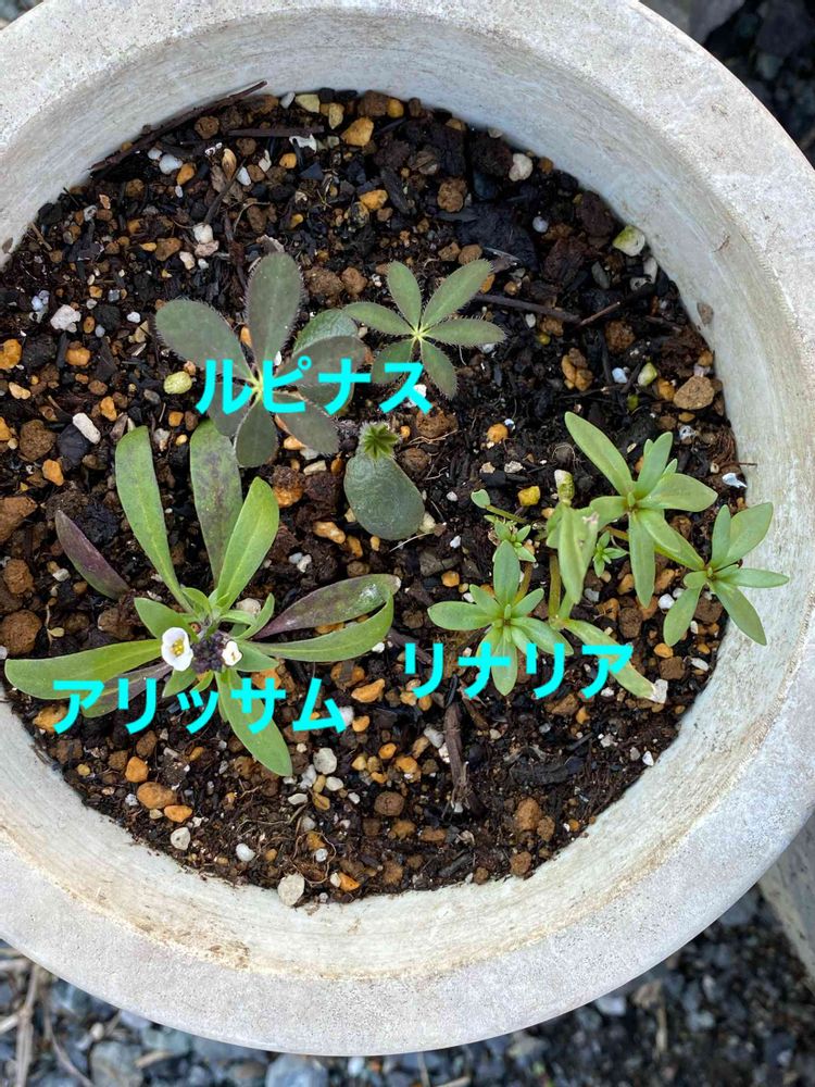 種まきで育てた苗を、寄せ植えしました。