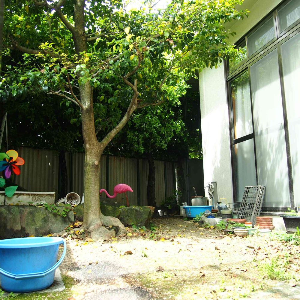 花壇の横(と言うか上?)にデカめの木がモリモリ。