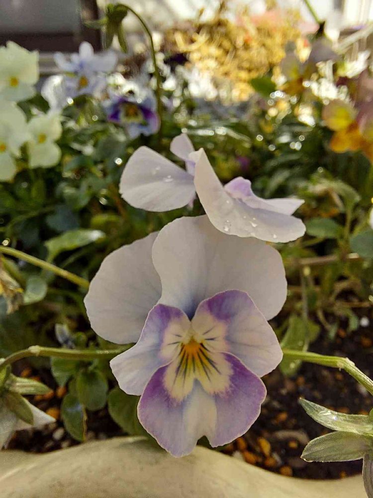 寄せ植えのパープル💜のビオラちゃんに現れた可愛いお顔👀‼️ペルシャ猫😺💕ちゃんに見えちゃう😊🎶