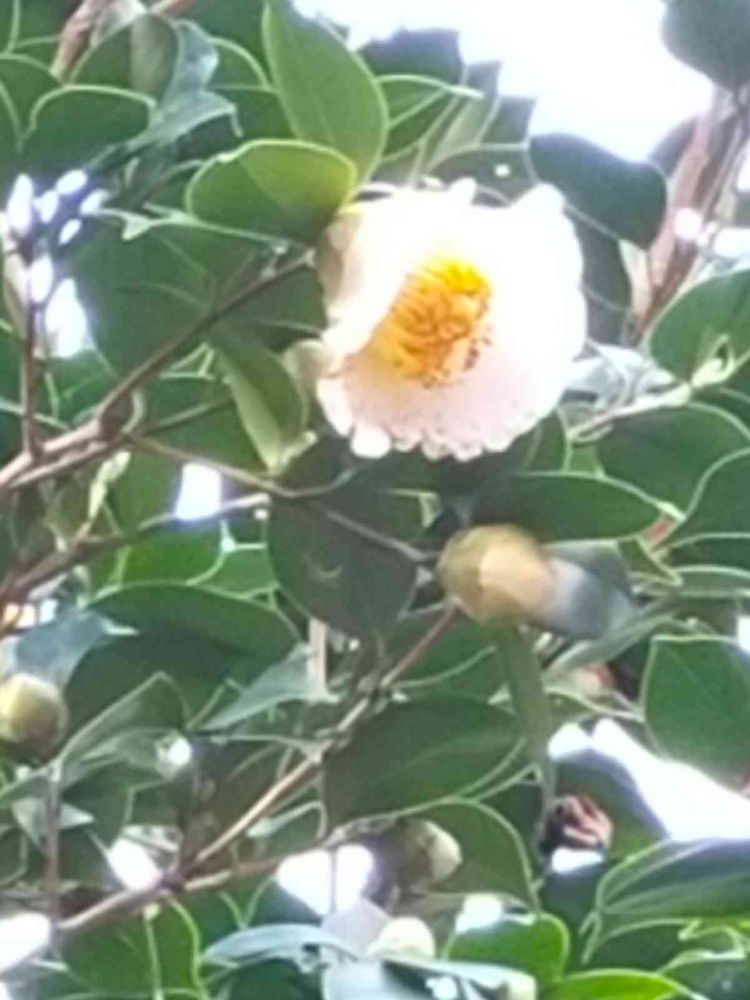 お早うございます。♥️ 見て頂き有難うございます。🤗💕 遠方で写りが悪いですが形は何とか写せました。この椿は蕾も可愛いですね。ふっくらした蕾の中心から蕊がピョコっと飛び出しています。それが何とも可愛いです。picの下の方に写ってるのですが分かりにくいですね。笑 ☺️💕