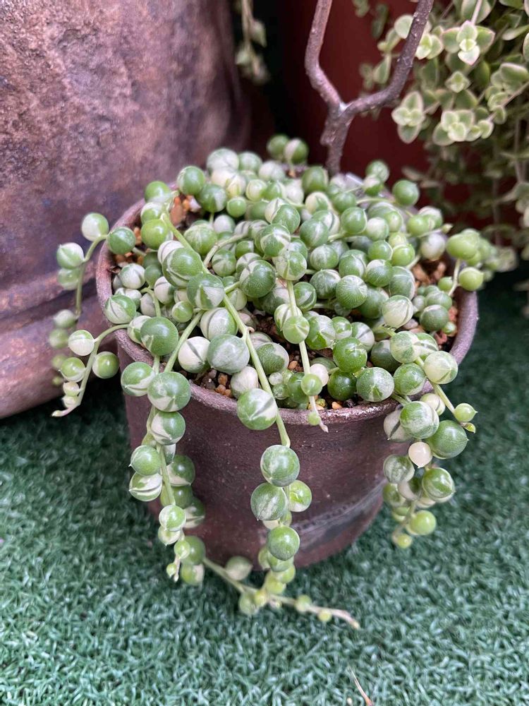 グリネさんは他のネックレス系よりも根張りが繊細な気がしてるので、とにかく元気な根っこ重視で肥料はネックレス系は全て液肥にしてるのですが、グリネ、斑入りのグリネにだけ、夏前と冬前に液体活力剤を数回あげて、根張りを促してます〜。