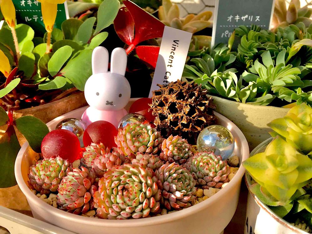 2ポット分を寄せ植えて飾り付けてみました😆公園で拾った木の種?実?も添えて。