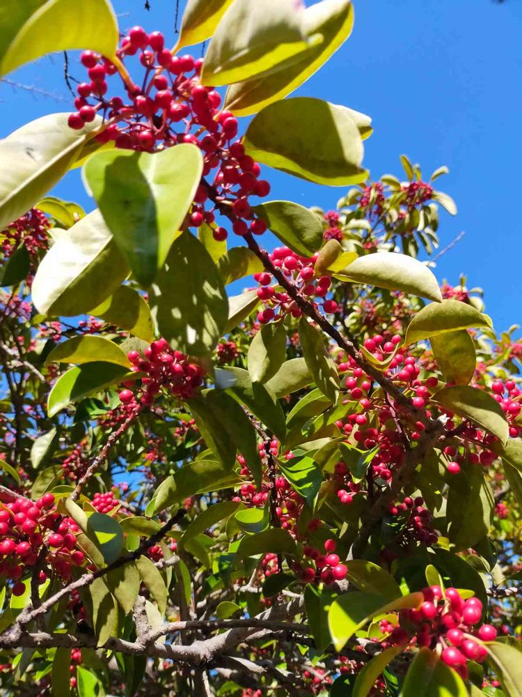 青空にクロガネモチの赤い実が映えて、とてもきれいな写真ですね🍒