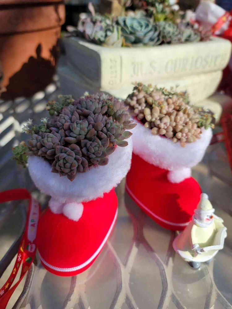 クリスマスブーツに植えられた多肉ちゃんたち🎵