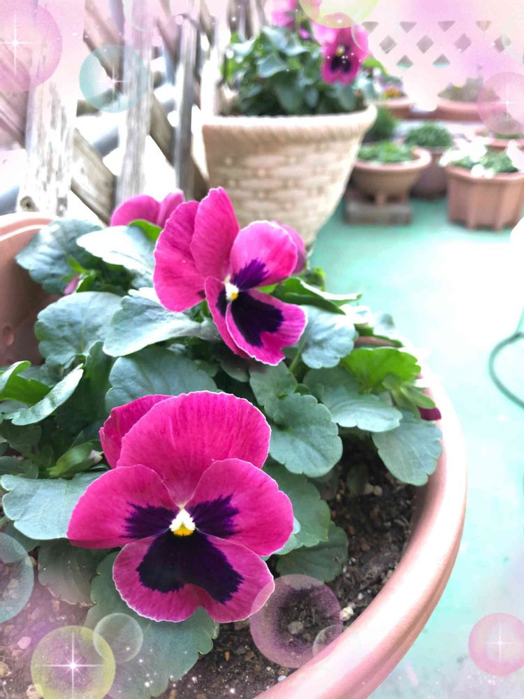 パンジーさん、違う色を買ったつもりなのに奥のパンジーさんも全く一緒の子で😅