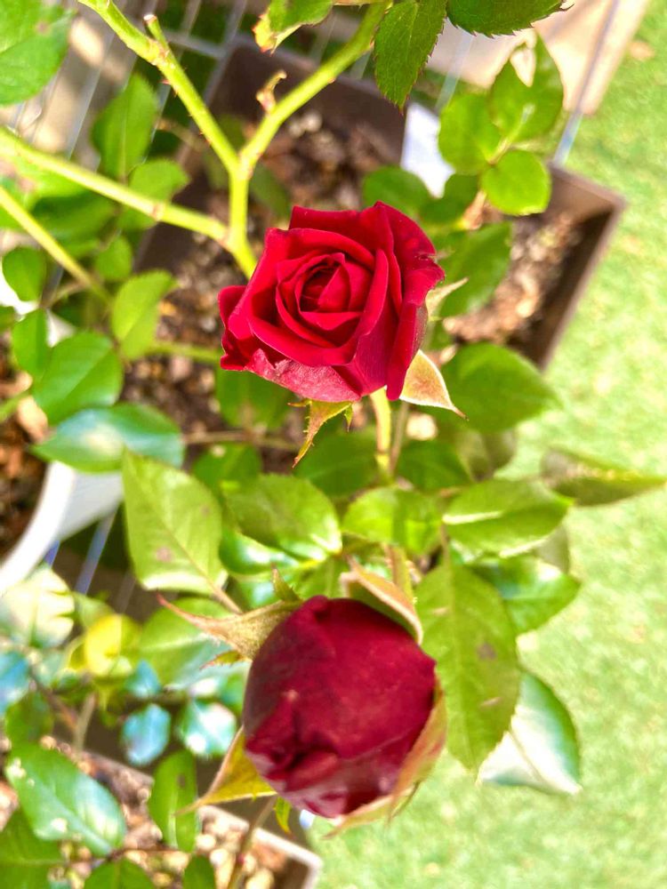 この子はミニ薔薇ですが、11月23日のPICの赤いスプレー薔薇も切り花の挿木です🌹