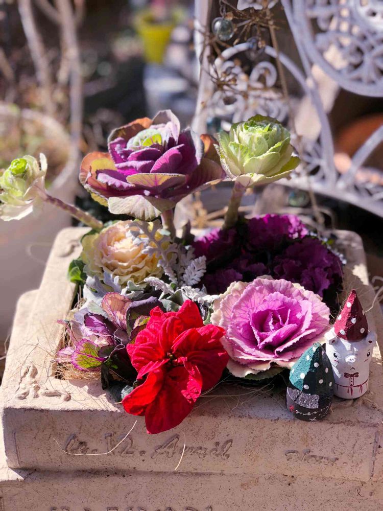 木立の葉牡丹は切り花で買ってきたのが初根したので