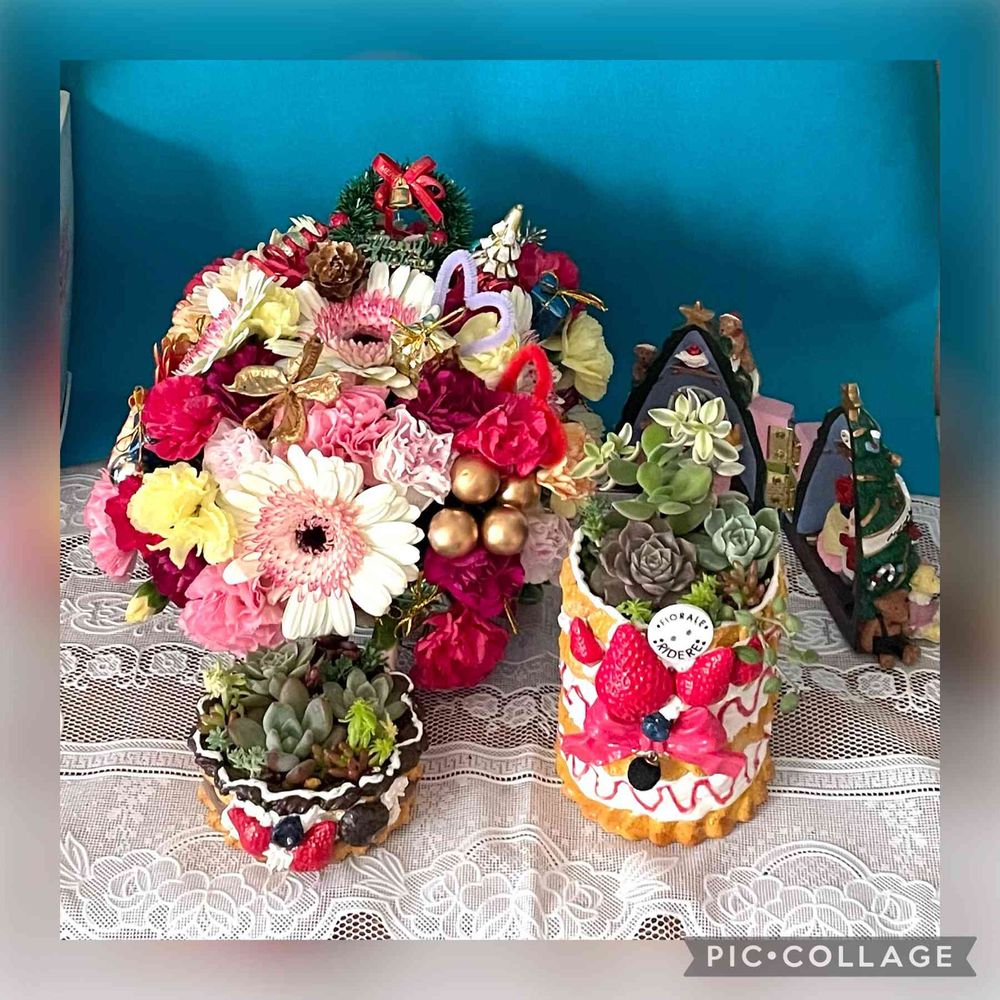 先生が朝市場でまとめ買いしてきてくれたので、元気なお花で作れましたよ🥰