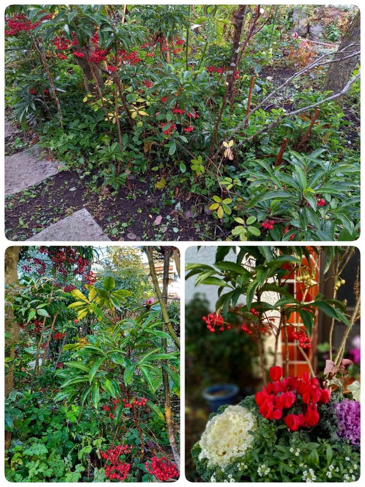 玄関先の寄せ植えには紅白の万両を入れました🌿💕