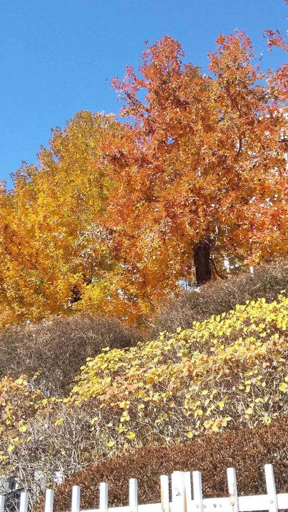 今日もお天気良く「ケヤキ」の黄葉が青空に映えます。🍂🍁💙🤗😊🌞