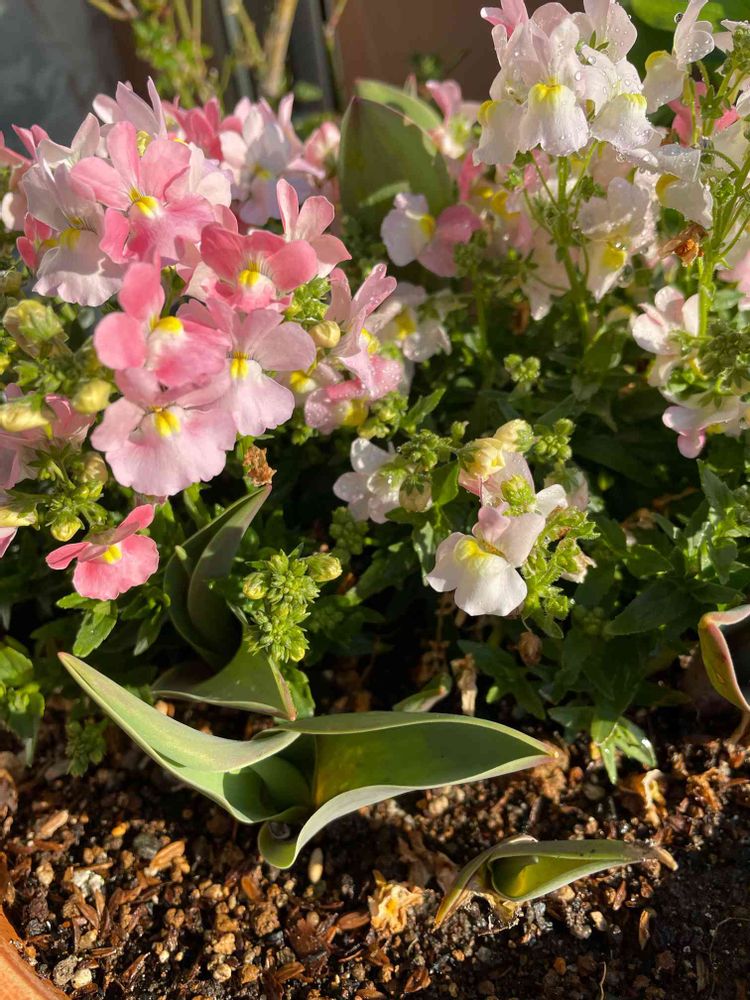 暖かくなったらもりもりのネメシアの間からかわいいチューリップ🌷が咲くのが