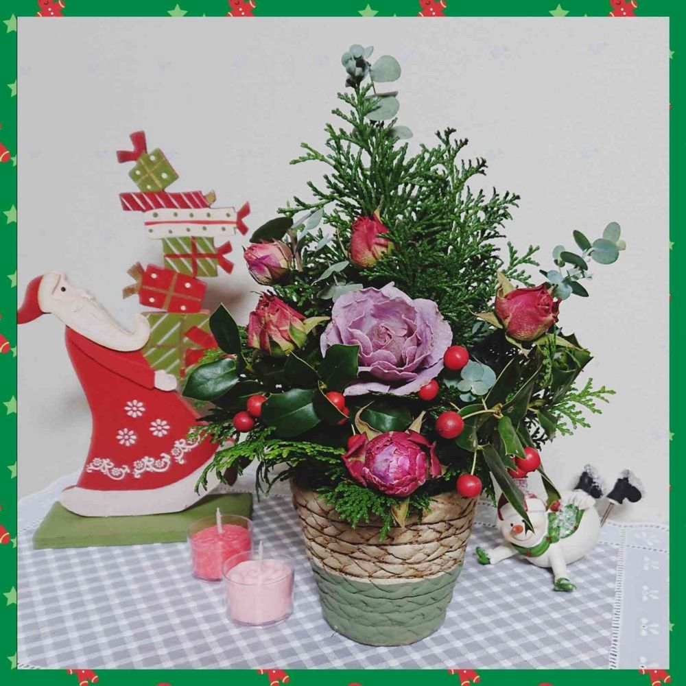 クリスマスホーリーでプチアレンジクリスマス風🎄