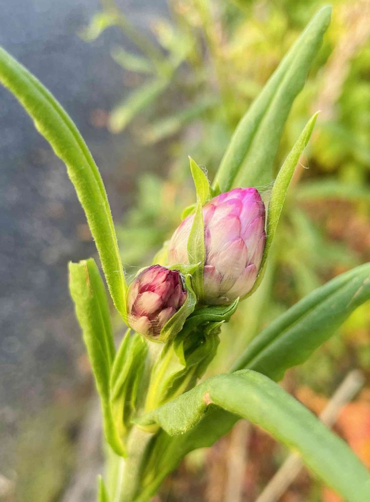 寒くなったのに 花壇のムギワラギクの蕾が咲こうとがんばっています
