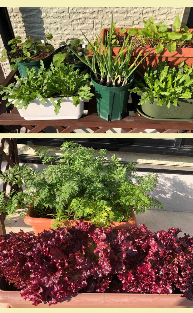 うちはベランダで、いちごと水菜とチシャと 同じく買ってきたネギの根っこを植えてます😁