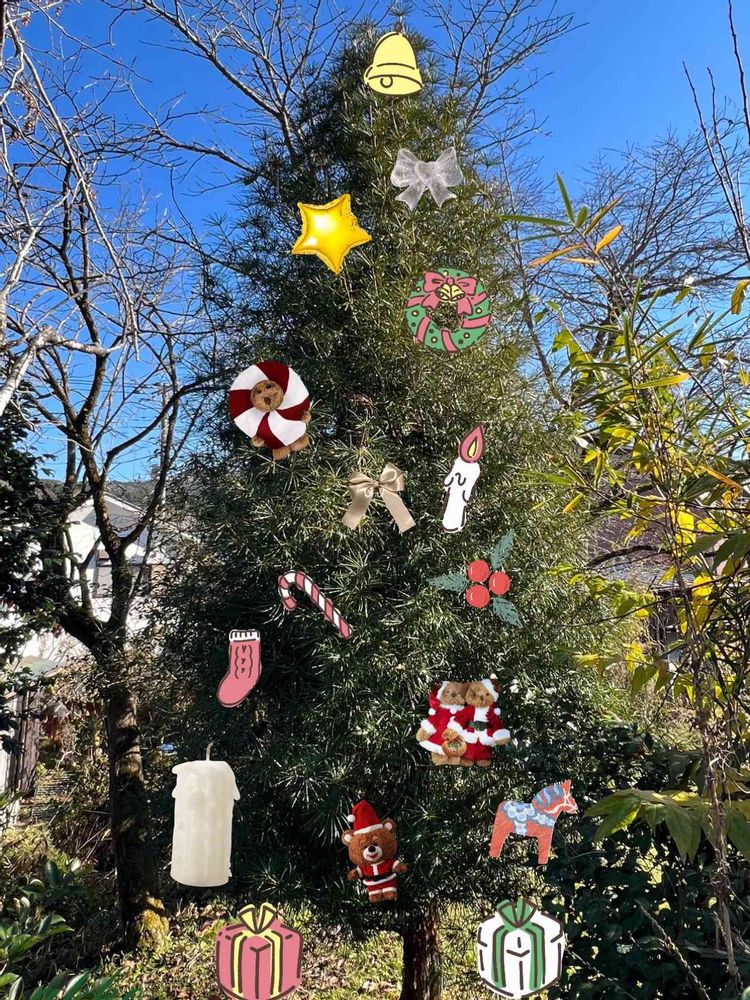 裏庭の,高野槙の木に飾りをしてみました‼️