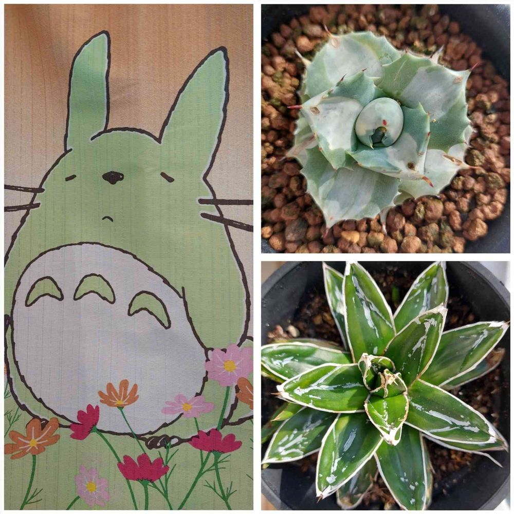 トトロさんののれんとアガベサンの色が合ってる😘💕💕💕