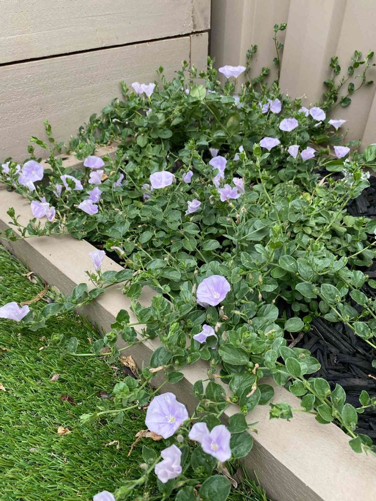 枯れた鉢のコンボルブルスを空いてる隙間に植えていたら 花を咲かせてくれました💕
