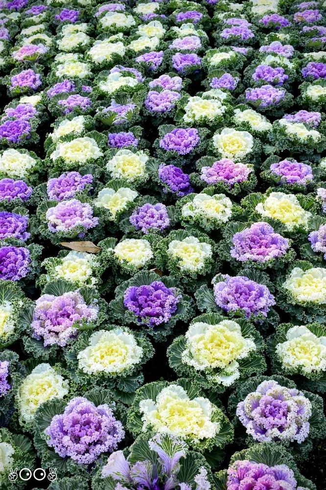 🏠で葉牡丹を育てる時、他の花と寄せ植えにしないと目立たないけど、このようにいっぱい植えると迫力あるね~~ (*^ᴗ^)