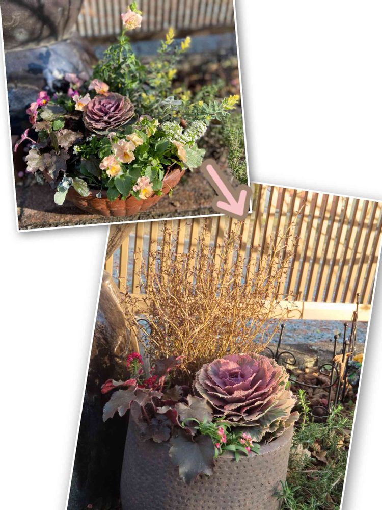 もとの寄せ植えはかわいい葉牡丹を一緒に買ってきて交換しました😊
