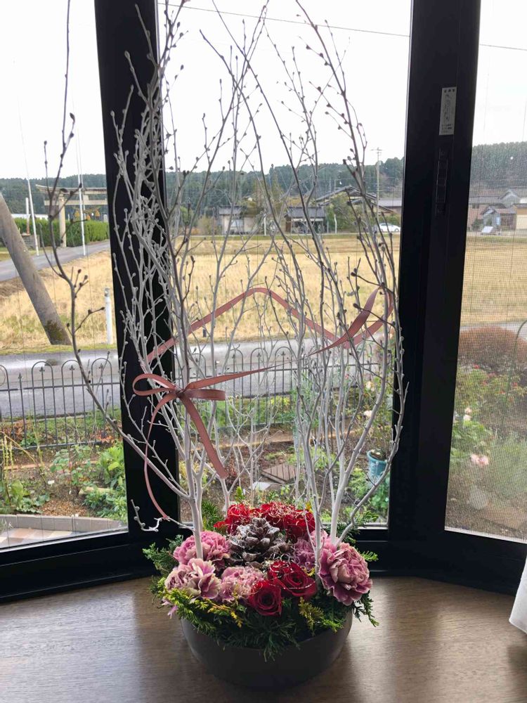 白い枝とマッシュのお花が可愛くてクリスマスにぴったりですね👏👏👏
