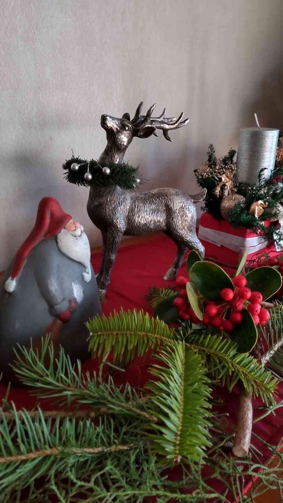 もみの木とクリスマスホーリーをカットして置くだけで、良い感じ🙆♀️