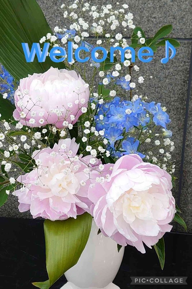淡い優しいピンク色の🎀💕💓💗芍薬さん🌸素敵な生け花ですね(ง ˙˘˙ )ว(ง ˙˘˙ )ว(ง ˙˘˙ )ว🎶デルフィニウム&カスミソウもbeautiful💕心がホゥ…( ˘͈ ᵕ ˘͈♡)ホッコリ