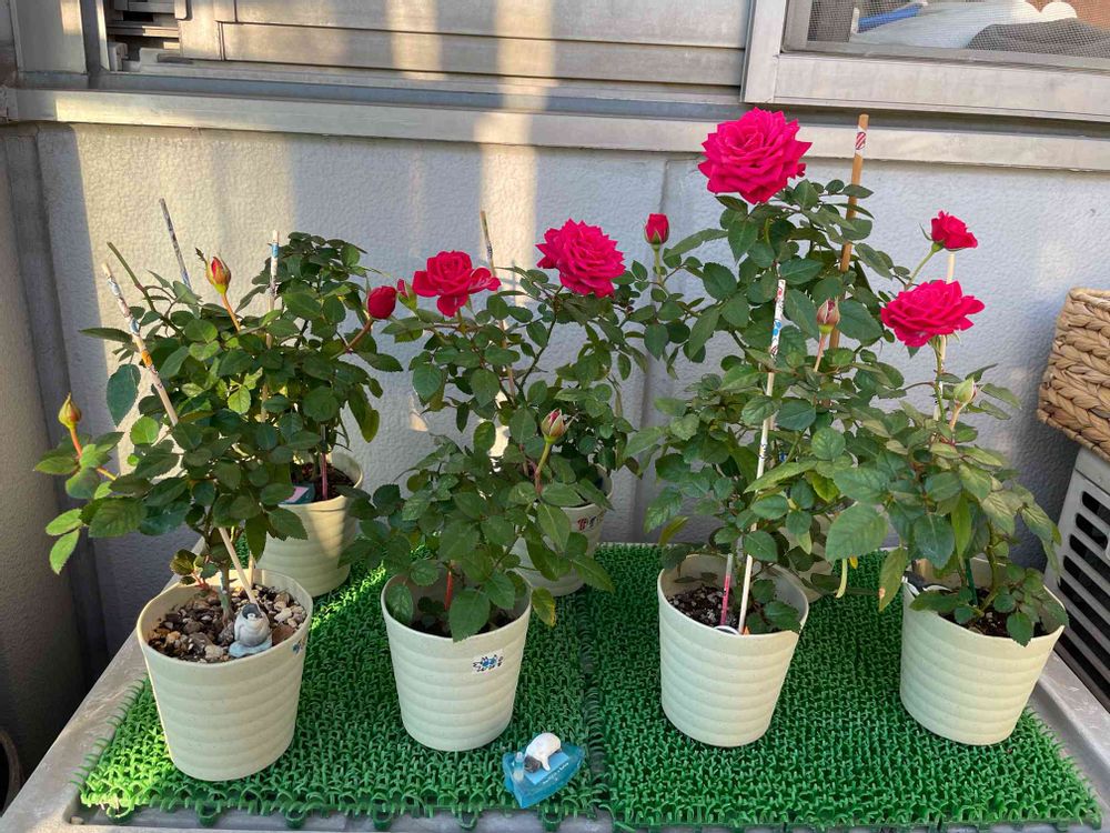 強風のベランダで、バラは負けない‼️嬉しくってバラ鉢だらけになっちゃいました💕品種不明のバラばかりなので鉢に名前をつけてます✌️ 2020年4月からバラ生活が始まり、GSは5月末から参加しました。みなさんからいろんな植物の話が見聞き&おしゃべりできてとっても楽しいです。ありがとぉです💕どうぞよろしくです。