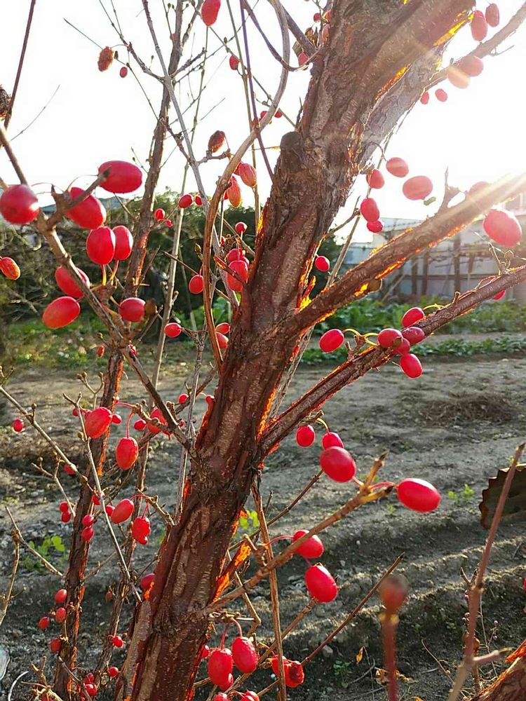 このサンシュユの木は、道路に面したよそ様の畑の角にあって、道端で間近で見られます😄 手を延ばせば実も採れますが😁 さすがにそれはできず😓 道端に落ちていた実5個と葉っぱを拾ってくるのが精いっぱいでした~😅💦