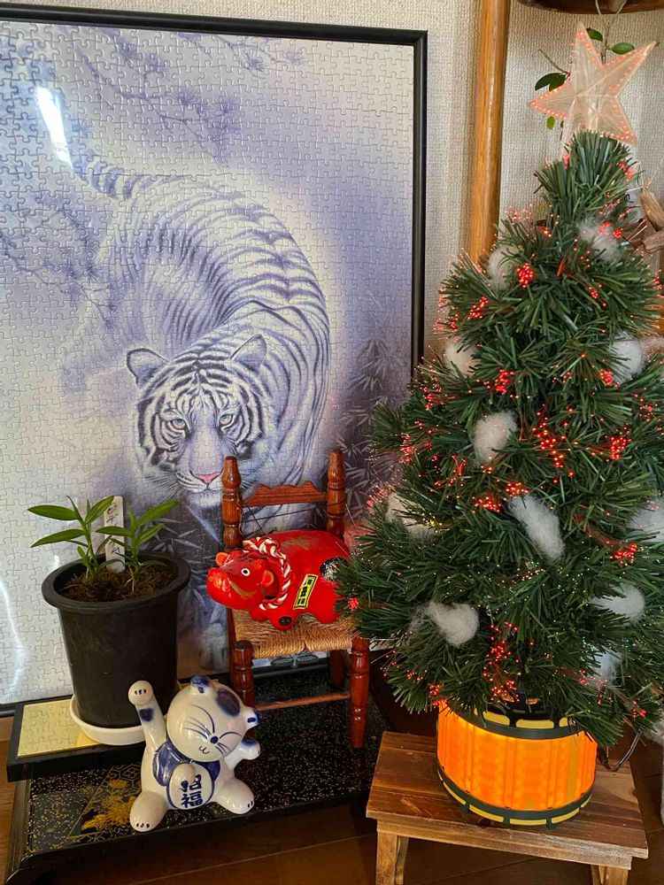 外にはユーカリに100均のイルミネーションを絡め…行く歳来る歳も年女ももう直ぐ引き継ぎ~記念写真に招き猫、エビデンドラム