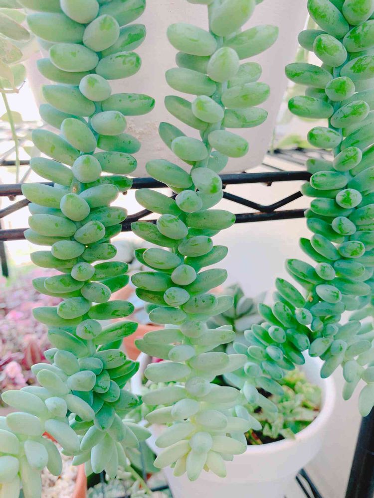 多肉どんぶりから垂れすぎたので深めの鉢に植え替えたんですけどまたまた地面についてきたのです😅
