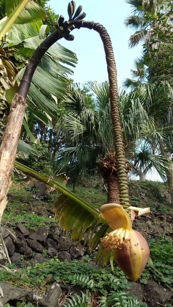 3mくらいあって、上にはバナナ🍌のような実がなって、ずーっと見てました。
