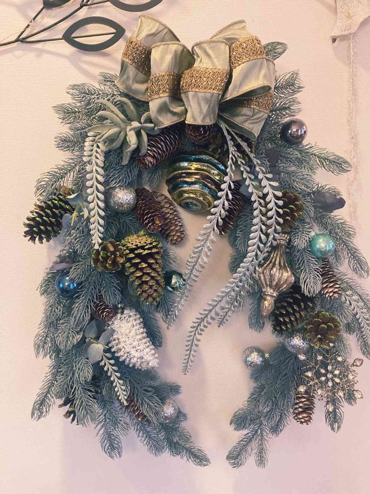 友人作のスワッグ。こんな色合いも素敵です。クリスマスまでもう少し。