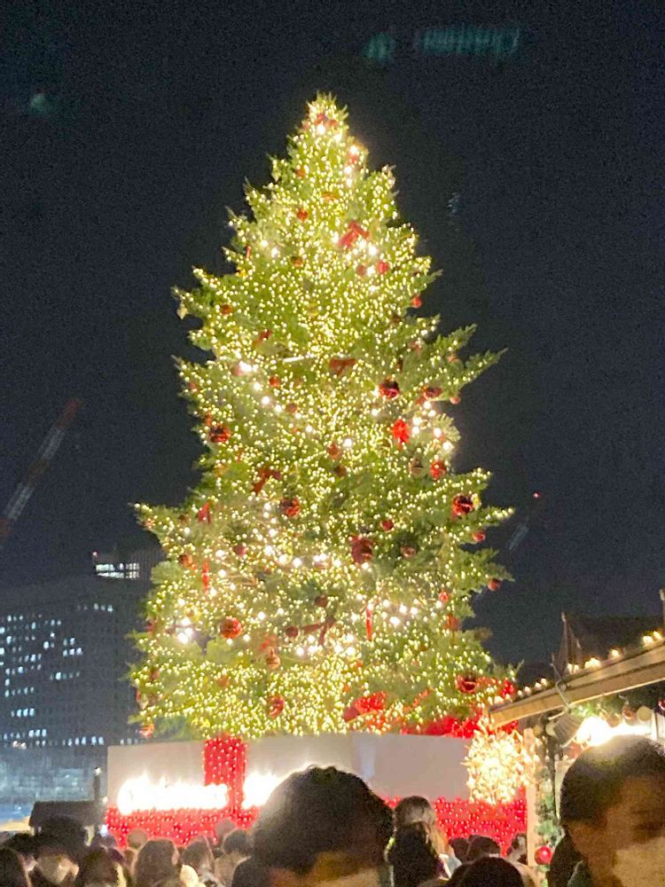 みなとみらいの赤煉瓦倉庫街のクリスマスツリー。きれいです。木の種類はなんだろう?ダグラスファー?