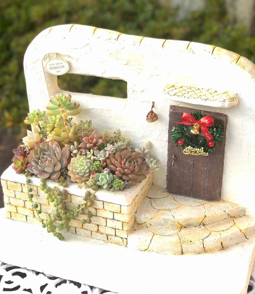 寄せ植えもすてきですが モルタルハウスもいいですね 📎 と スクショまでしちゃいました☀️😀 参考にさせていただきます✨ モルタルに使うコテを探しにダイソーに行きましたがありませんでした😅 材料を少しずつ集めています😁