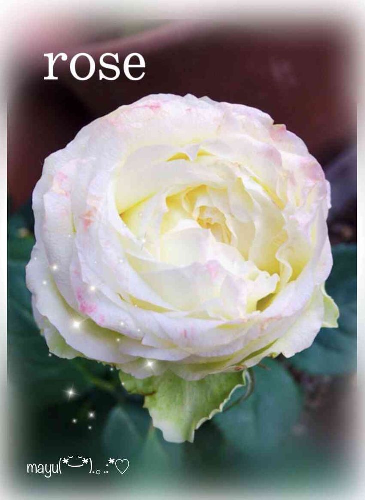 ほんのり縁どりがピンクの白い薔薇さん咲きました゚・*:.。❁