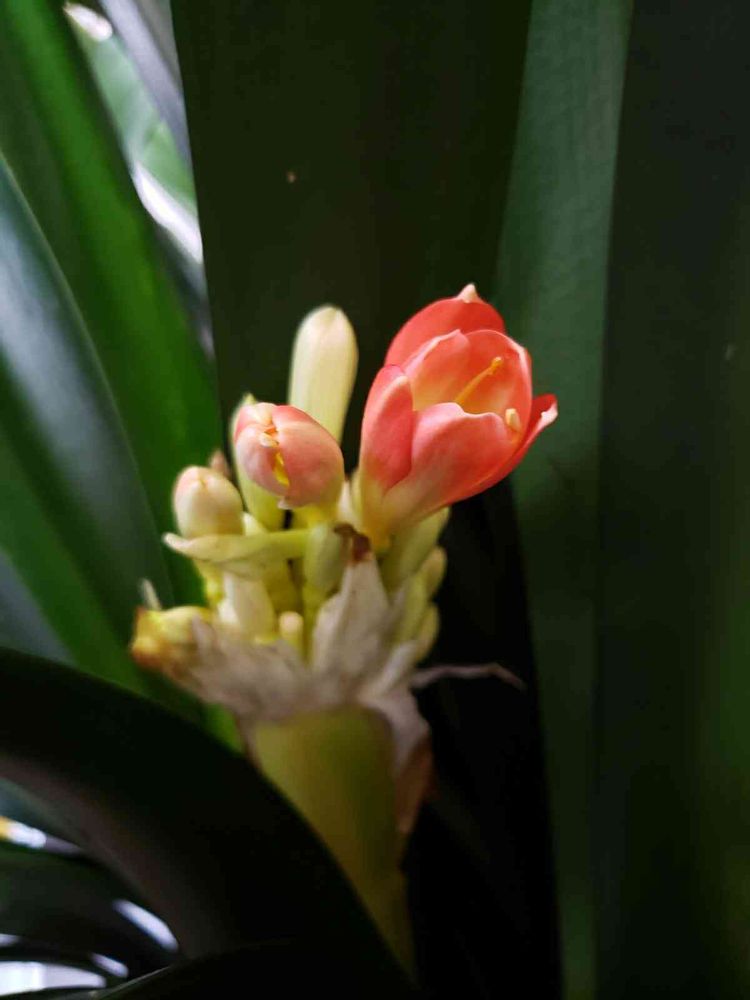 さっきクンシランを動かしたら、ビックリ👀‼️花、蕾がついて、花が開きかけてました。😃✌️
