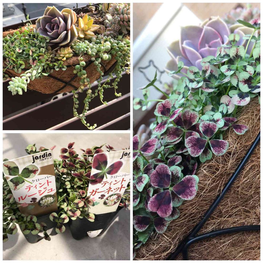 ホームセンターでgetしたクローバーさんと多肉さんを使って寄せ植えバンキング