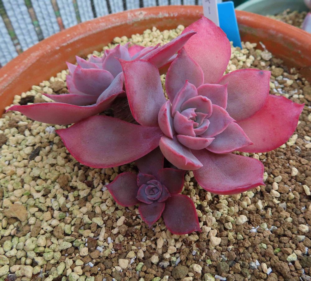 一昨年の春に成長点が消えてしまったエケベリアのピンキー。その後周りにぐるっと子株が出てきたけど,結局3つだけ生き残った。しかも,元の株よりも小さいままでなかなか大きくならない。次の春が,子株をカットして独立させるタイミングかも。