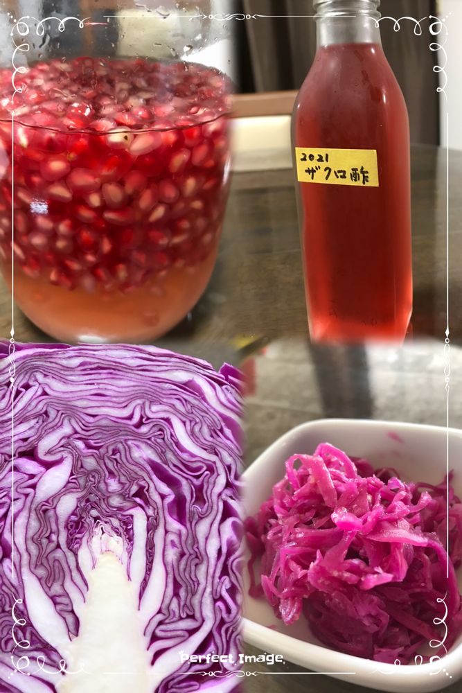 家庭菜園の無農薬の紫キャベツ、我が家定番のハニーマリネにりんご酢の代わりに使ってみたらマイルドな酸味で美味しいマリネになりました👍