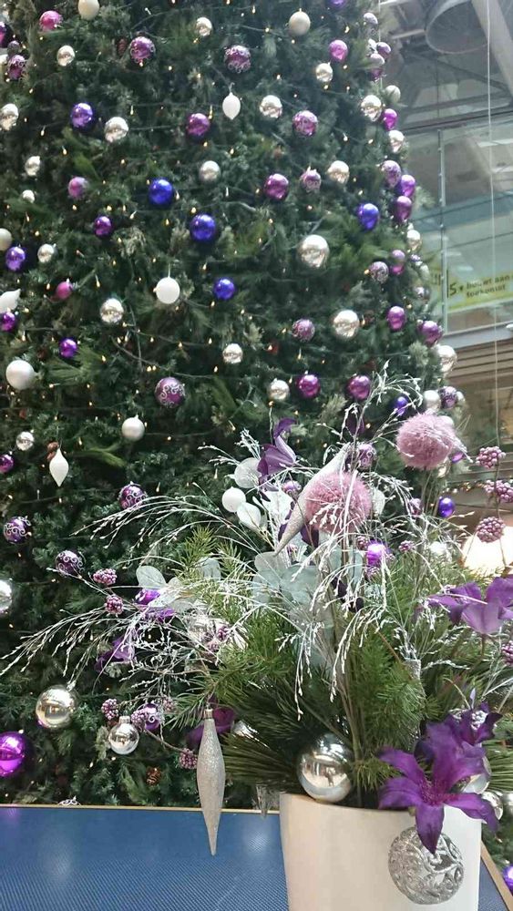 アムステルダム🇳🇱 ワールドトレードセンターのベンチ横のアレンジメントとクリスマスツリー✨🎄✨