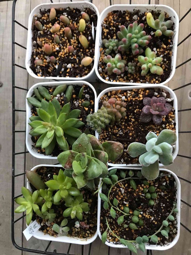 神刀や茶釜は去年は大きな鉢で寄せ植えでしたが冬越ししましたが今年は個別に。