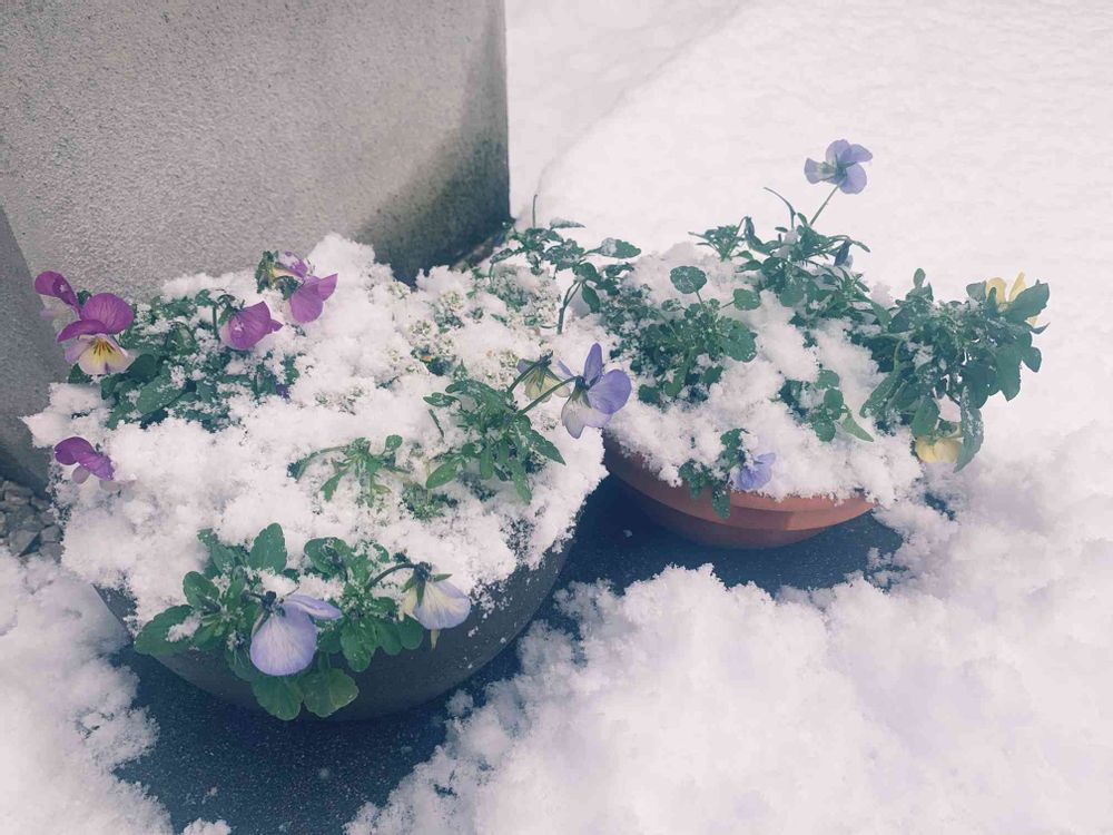 ビオラたちもっと雪の当たらないところに移動しておけば、よかったです💦