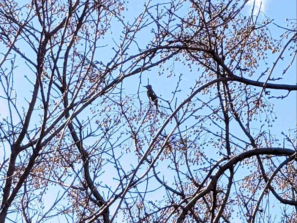 寒風で木々も大きく揺れる中、栴檀にはヒヨドリヒヨちゃんが一羽。…実を食べるでも無く、ずっと留まっています。