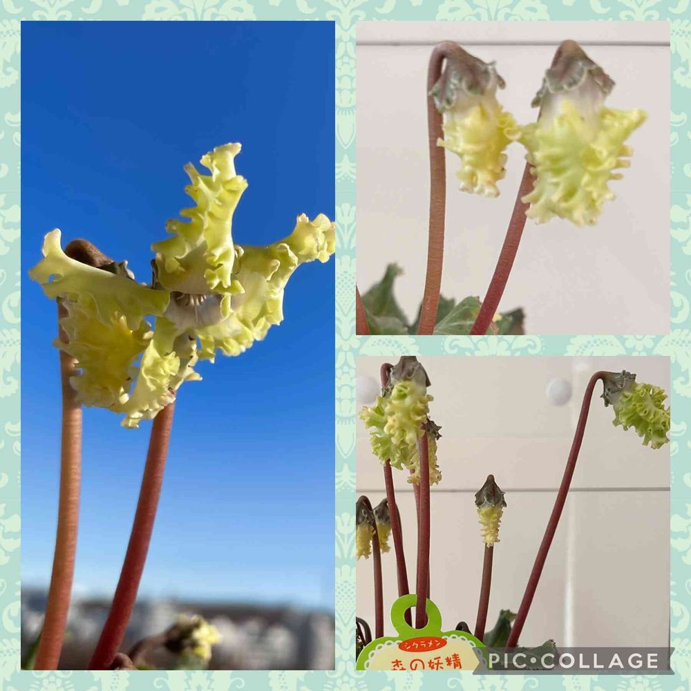 黄緑色シクラメンの花がぁ〰️〰️〰️〰️🎺💚💚💚💖