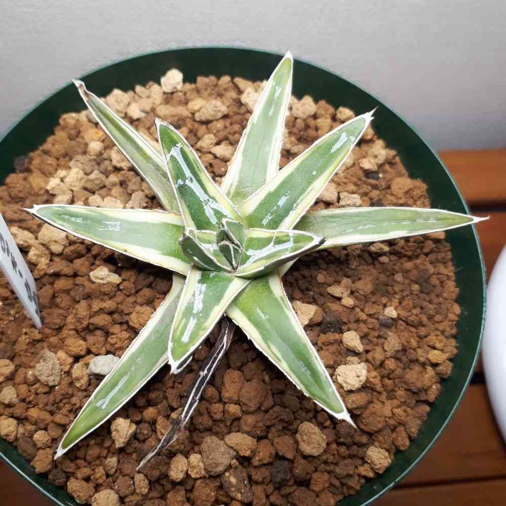 のじこさんこんばんはー❕僕もアガベデビューは王妃雷神白中斑でした😆王妃雷神はアガベの中でも小型の品種で、あまり大きくならないです✨アガベの中でも場所を取らない品種だと思います🌱何より可愛い( *´艸)