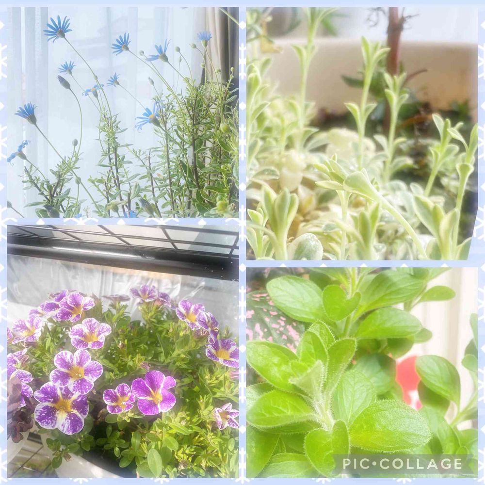 ブルーデージーは太陽に向かって咲いてます🌸シレネもよくみたら新しい芽がたくさん出てきてました🥰お外のシレネさんは大丈夫かしら…
